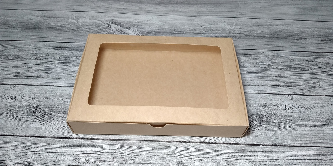 Коробка із щільного крафтового (коричневого) картону, підходить для пакування пряників, біжутерії та інших виробів.